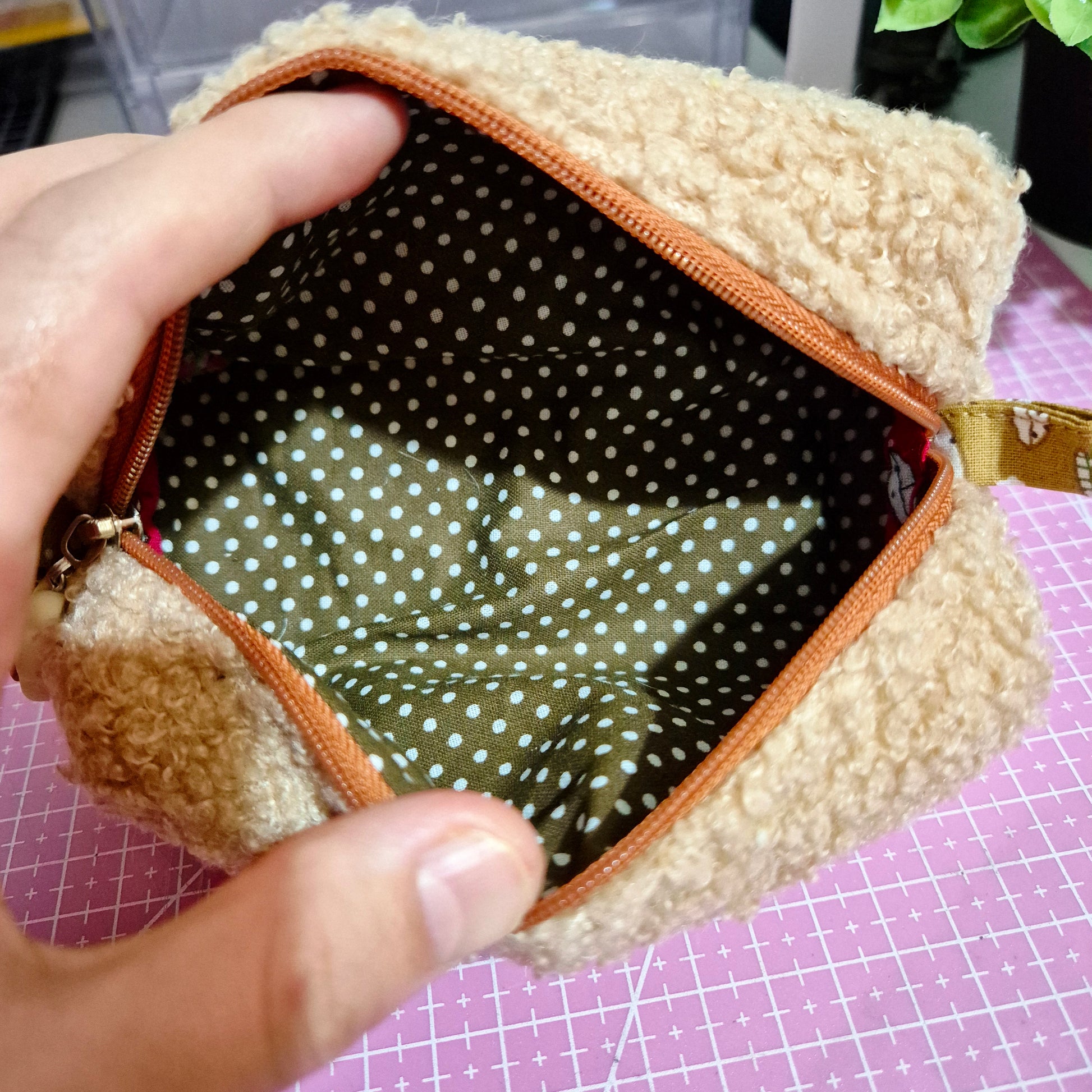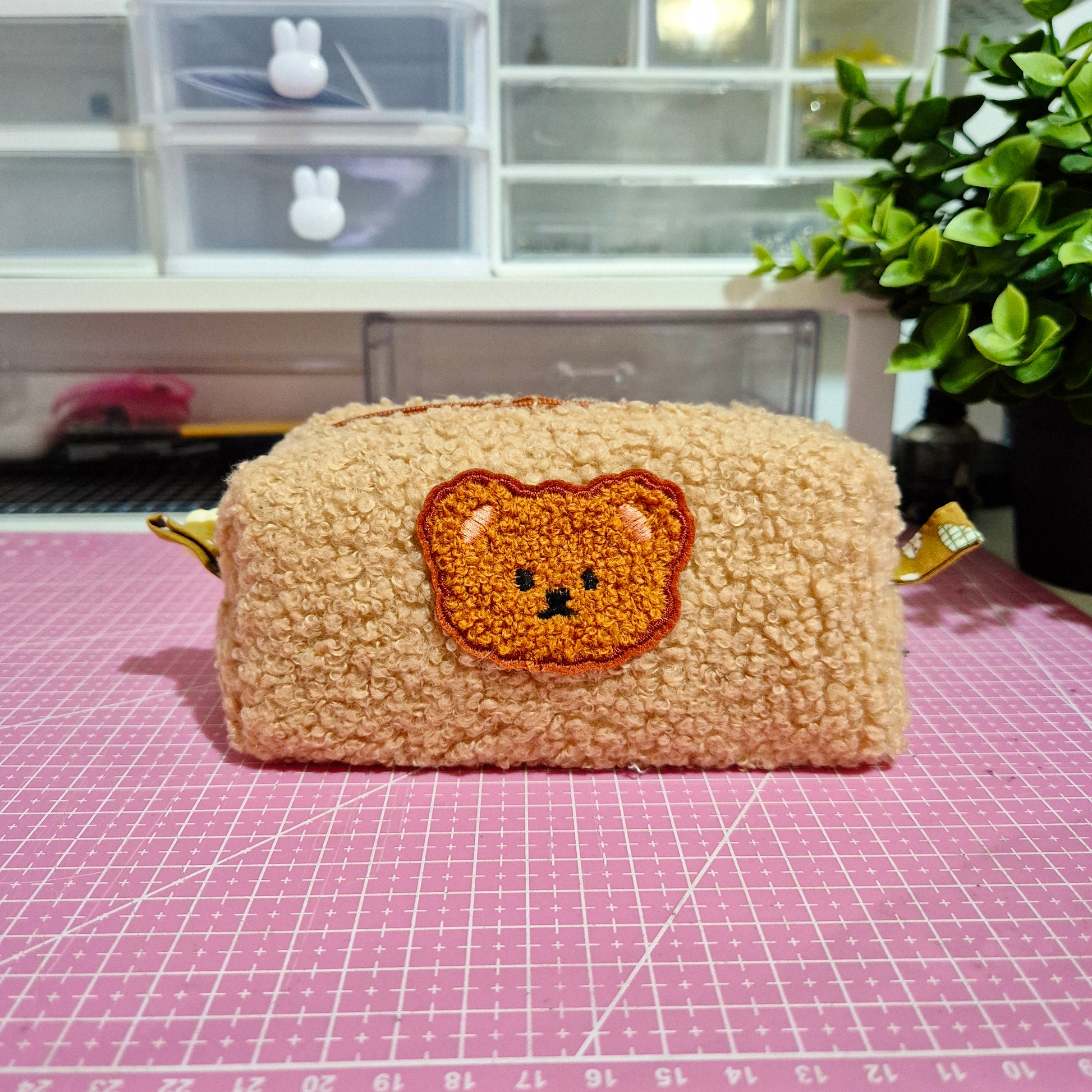 Handmade bag with a cute fluffy bear on the front. Soft, cosy, and perfect for your everyday essentials. Cute, simple, and easy to carry anywhere.